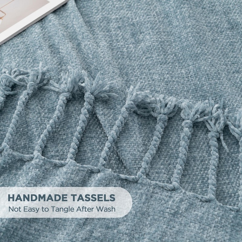 - DURABLE & STYLISH: Superior woven workmanship in very good construction, which is no shedding and won't lose shape or connection. This stylish pretty color chenille throw blanket fits for any rooms. The stylish tassel makes this blanket a great home decoration for sofa, couch and bed.