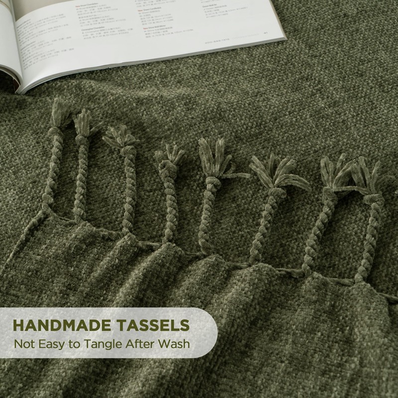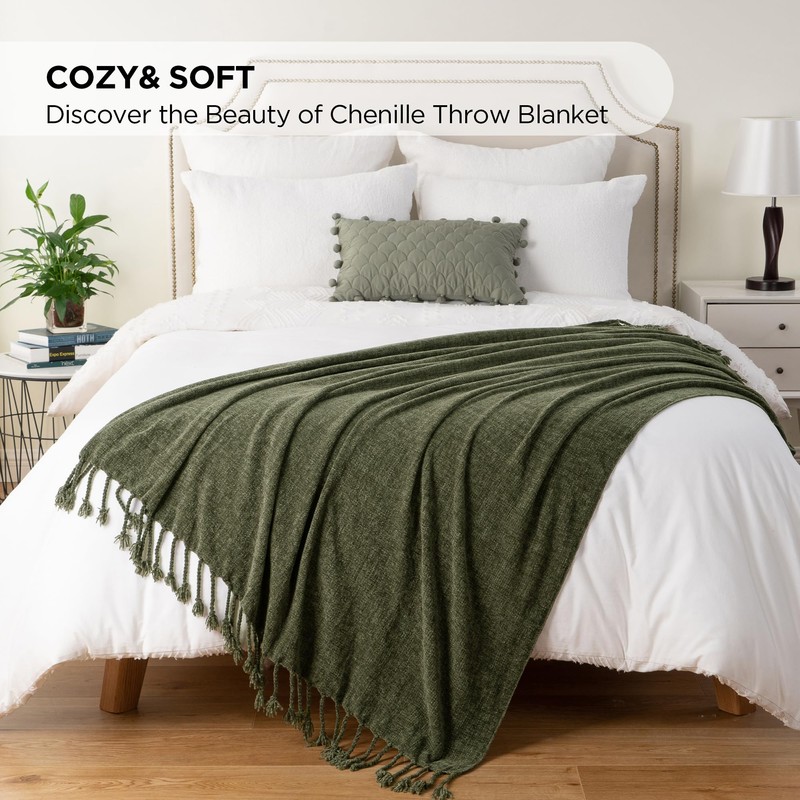 • 【Sturdy & Stylish】Our chenille blankets are made with a superior weave, very well constructed and will not shed, warp or break. Also, the fashionable fringe design adds a touch of style to any space. Whether you're looking to enhance the beauty of your living room or bedroom, the stylish details of this blanket will easily elevate your decor