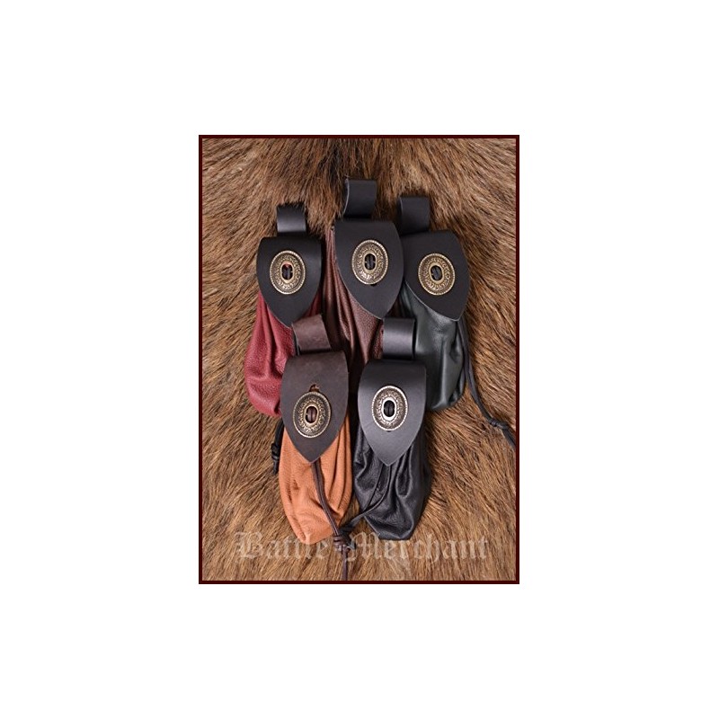 Battle-Merchant Large Medieval Leather Money Cat with Metal Clasp Wallet Thaler Bag Leather Bag (Dark Brown)