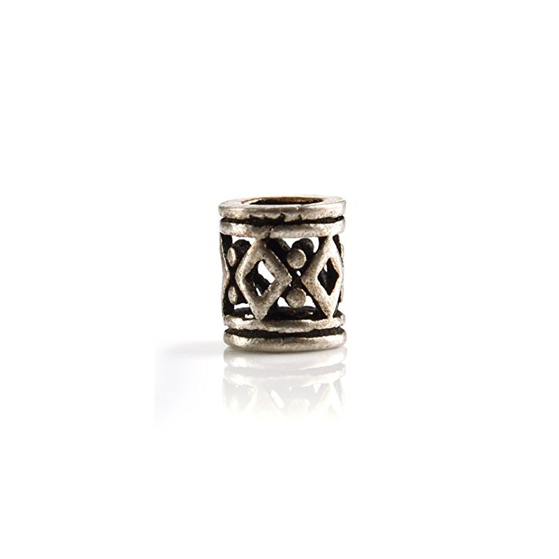 Battle-Merchant Viking Beard Bead, Small, 3 mm Inner Diameter, 925 Silver with Diamond Pattern