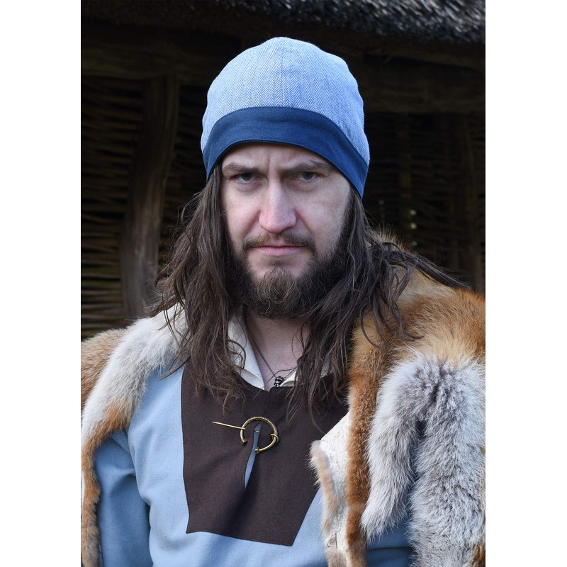 Battle-Merchant Viking Birka Cap with Herringbone Pattern - Medieval LARP Hat Headgear Hood, blue
