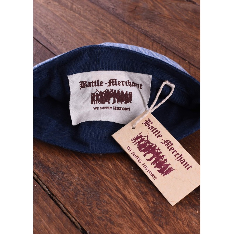 This medieval hat is made of solid cotton fabric with woven herringbone pattern and has a contrasting canvas waistband. Inside, the medieval hat is lined with a lightweight cotton fabric.