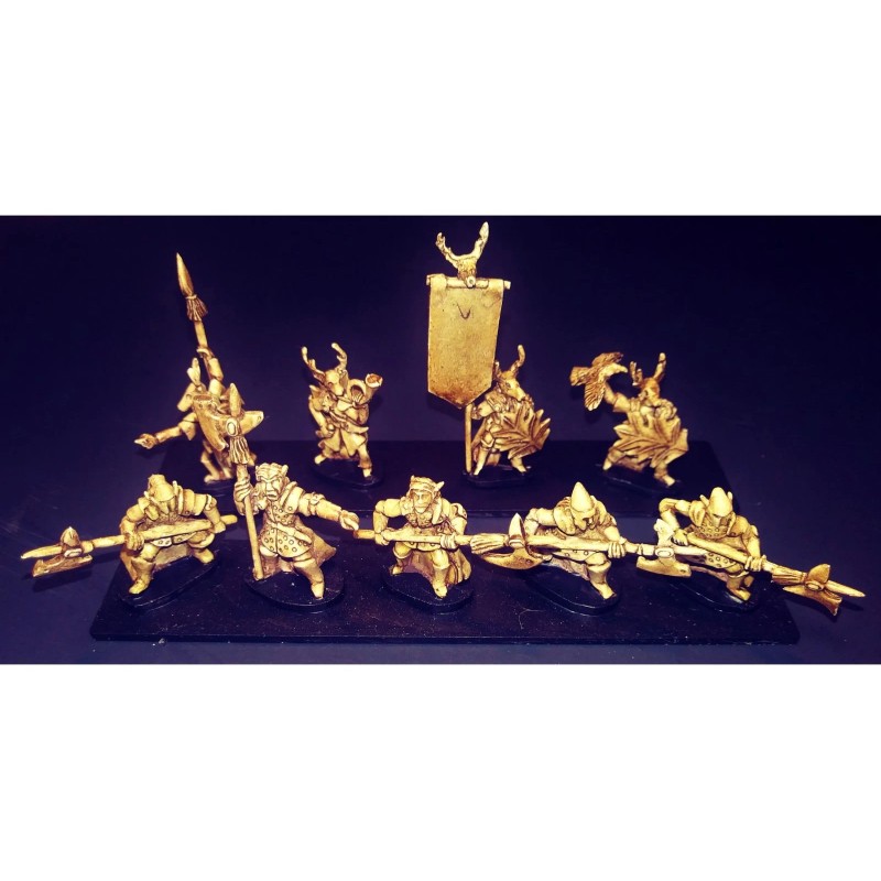 There are 5 variants of the Wovian Halberdier figures. You will receive a random mix of 32 Halberdiers, and 3 random Command figures consisting of an Officer, Standard Bearer. and Musician, plus 3 Shields.