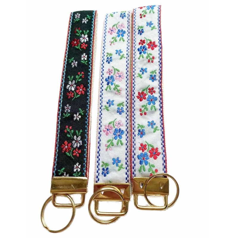 • PREMIUM QUALITY: Crafted with high-quality embroidery vintage floral, boho style, our keychains are designed to last and withstand regular use. Materials: cotton embroidery webbing strap, cotton fabric, metal.