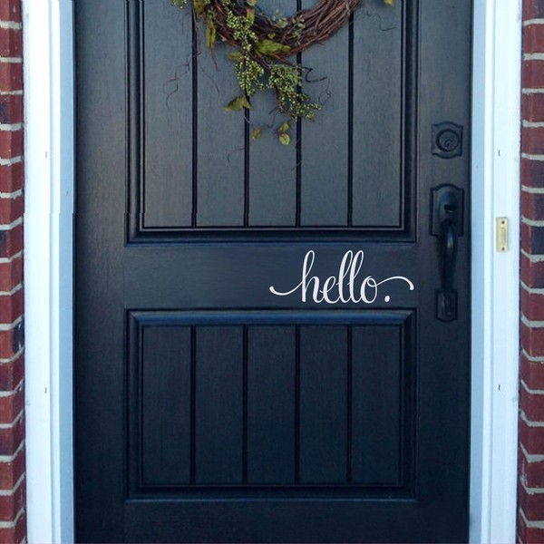 BATTOO Hello Front Door Decal Handwriting Script Vinyl Decal Sticker Elegant Wall Art Door D¡§?cor Hello Sign(White, 9.5"wx4"h)