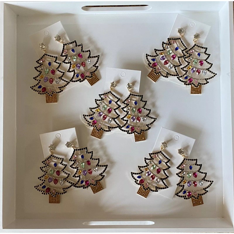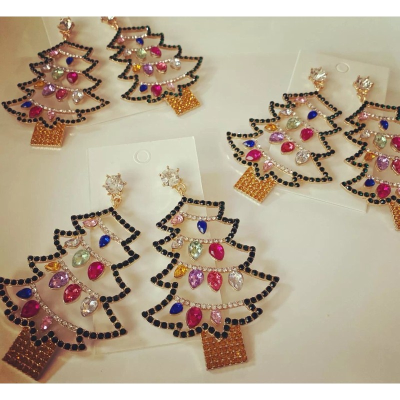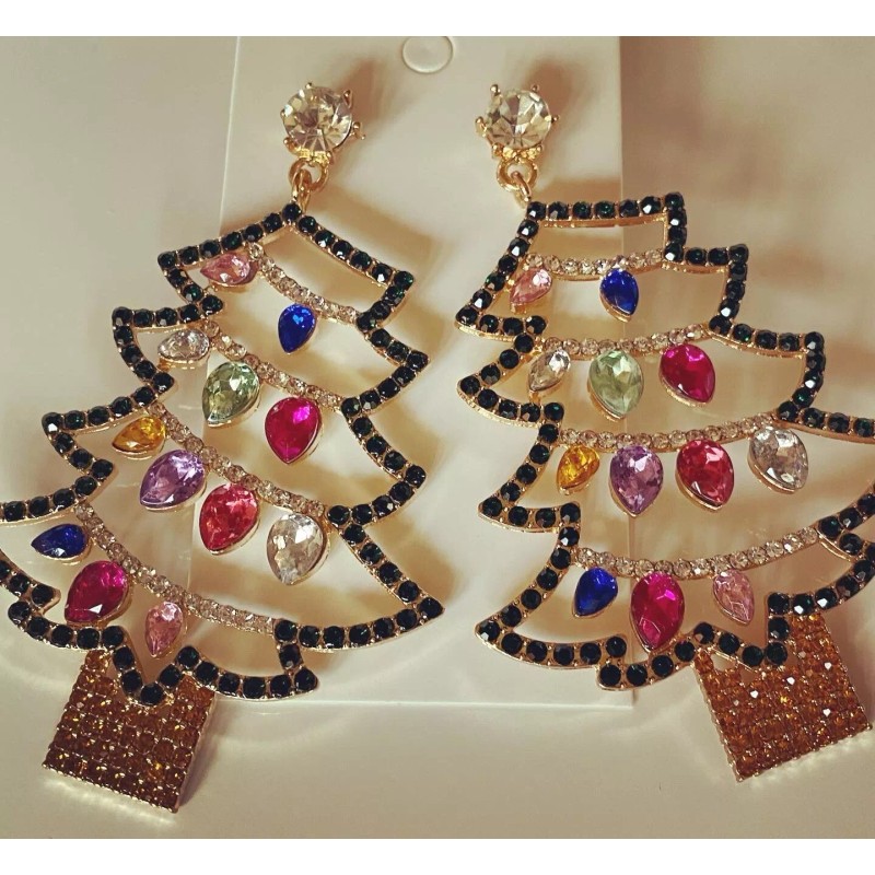 BaubleBar Christmas Tree Holiday Drop Earrings Lights Rhinestones Baublebar Dangle Colored