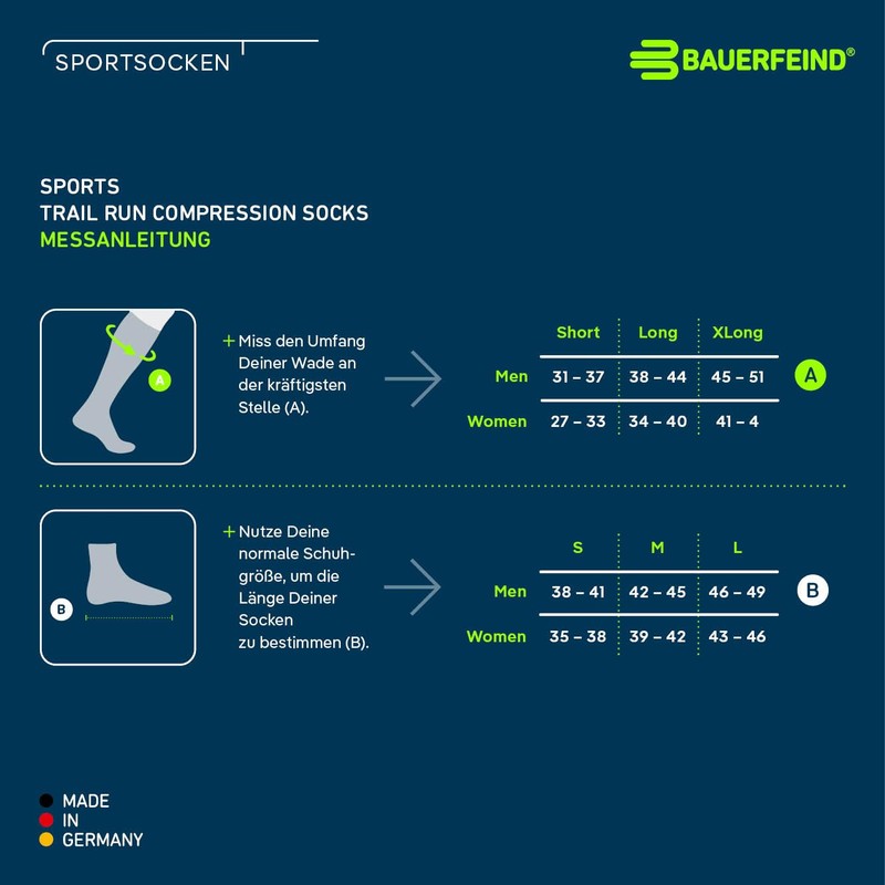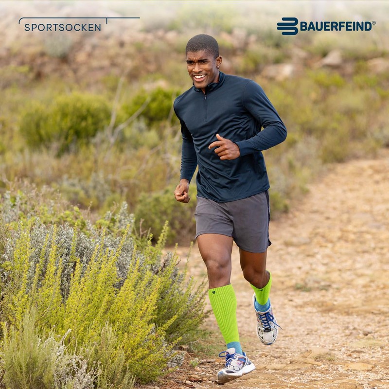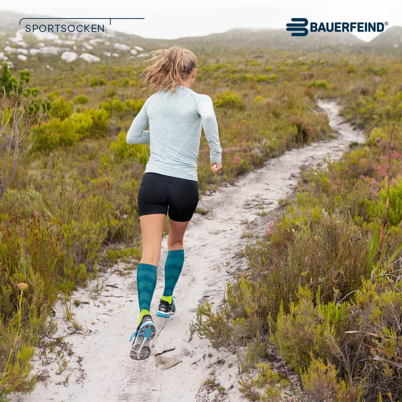 - Bauerfeind Running socks for men, developed in collaboration with professional trail runners specially for trail running and running in rough terrain