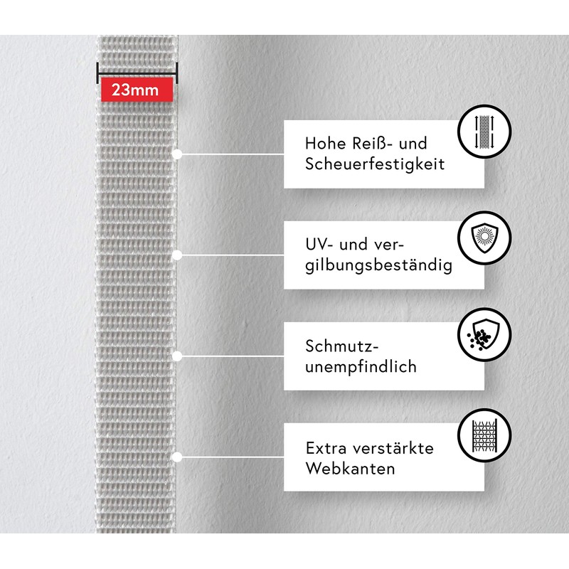 - Durable workmanship - thanks to the specially incorporated cross weaving, the blind tape does not tear further even if damaged and allows a particularly long service life