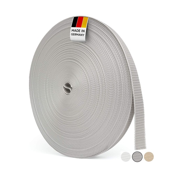 BAUHELD® 50 m Roller Shutter Belt, 14 mm 23 mm [Made in Germany] - Suitable for Roller Shutters on Doors and Windows [High Tear Resistance and UV Stability] - Roller Shutter Belt Roll in Grey, White, Beige