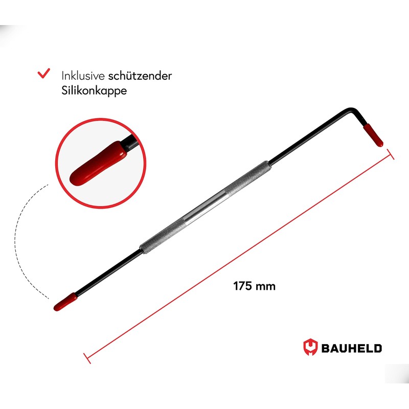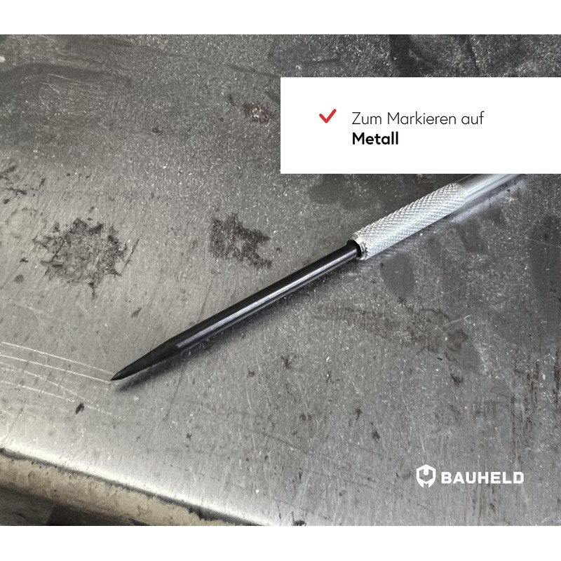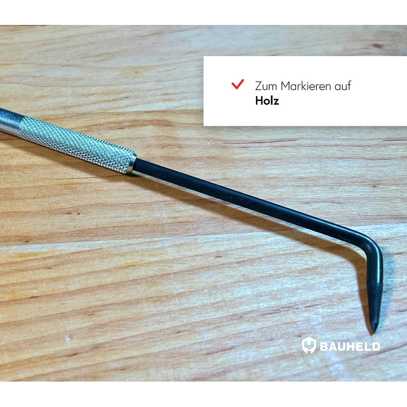 BAUHELD® Scribing Pin Metal [175 mm] – Scriber with Straight and Curved Needle [1 Piece] – Chrome-Plated Handle with Knurling – Scribing Tool Made of Hardened Steel – Includes Protective Caps
