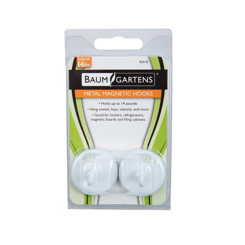 Baumgartens Metal Magnetic Hook, Holds 14Lbs, White, Pack of 2 (42410)