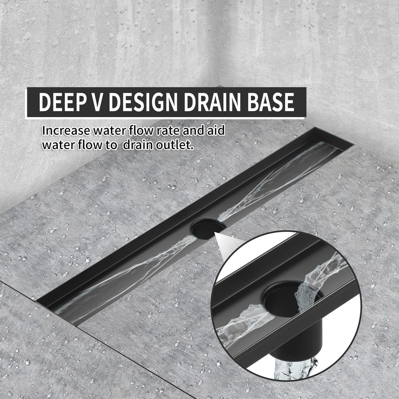 - 【Excellent Drainage Capacity】:The shallow V-shaped slope design ensures efficient water flow directly to the drain, minimizing water accumulation and speeding up drainage. It has a 2-inch central outlet diameter and an average drainage speed of 51L/min.
