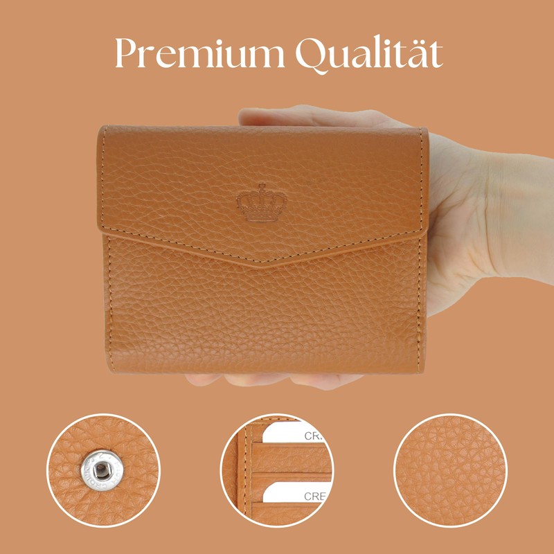 - Elegant design: compact genuine leather women's purse with flap closure on front and back. The handy and very practical size of the wallet makes it the perfect everyday companion.