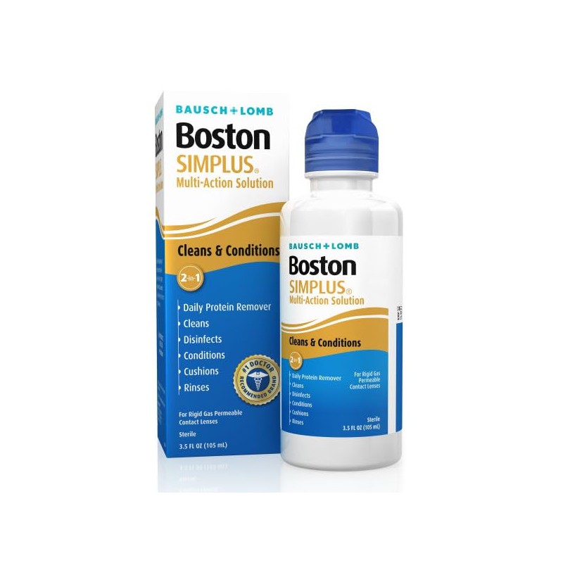 For people on the go who want fast, effective lens care without extra steps, Boston Simplus Multi-Action Solution simplifies everything into one overnight soak that cleans, disinfects, conditions, and removes protein deposits in one bottle for total care of rigid gas permeable contact lenses while Glucan-20 cushions and retains moisture for all-day comfort and hydration with no separate enzyme or daily cleaner required, making it the ideal choice for busy schedules, travelers, students, and anyone who prefers convenience without compromising eye health or lens clarity and is safe for daily use with a powerful dual disinfection system.