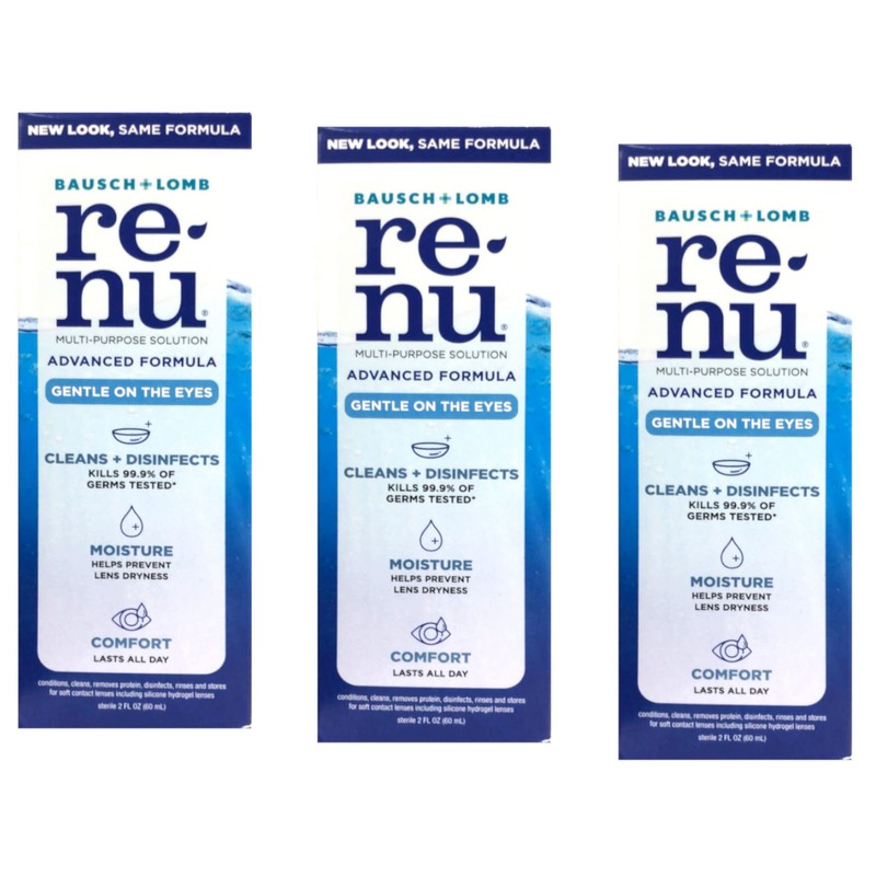 Bausch + Lomb Renu Multi-Purpose Contact Lens Solution Travel Size,2 Fl Oz (Pack of 3)