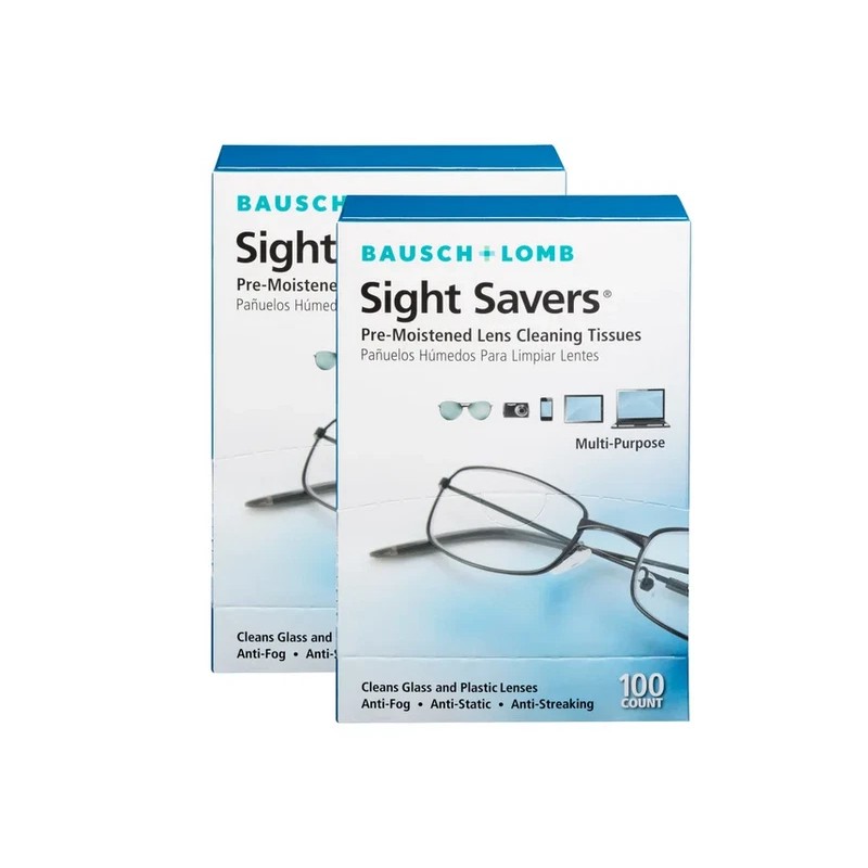 Bausch & Lomb Sight SaversLens Cleaning Tissues are designed to keep your eyewear, screens, and otherdelicate surfaces clean and smudge-free. This pack contains 200 tissues (2 x100 count) that provide a convenient and effective way to maintaincrystal-clear vision and preserve the quality of your lenses.