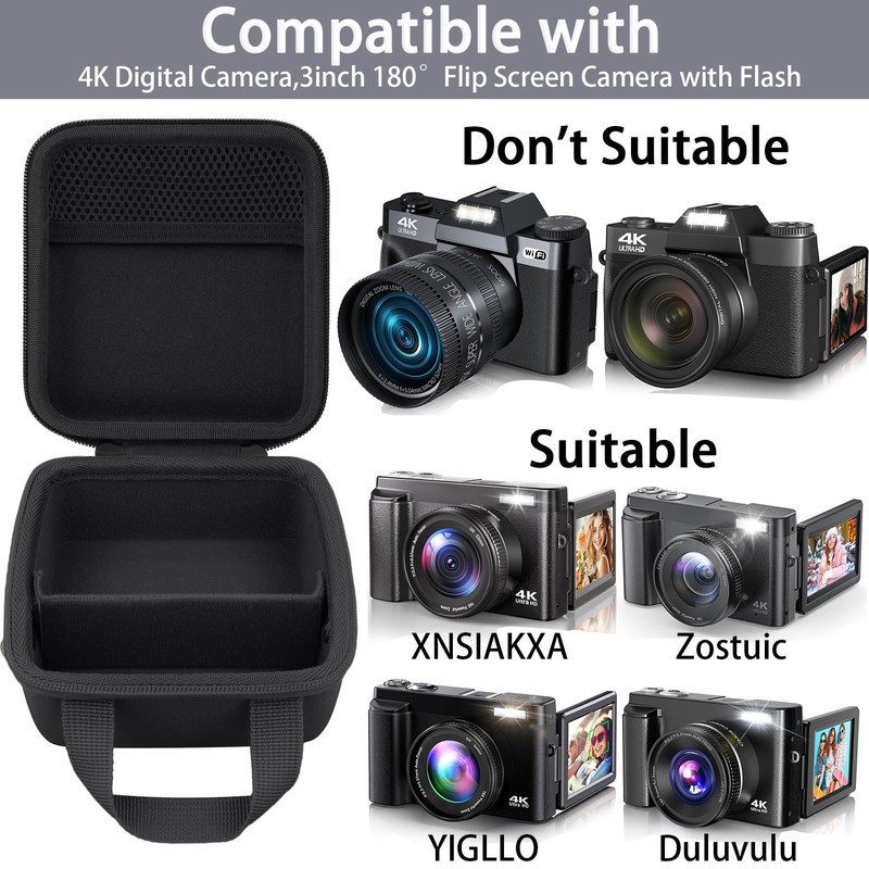 - Perfect design: The hard protective case is specifically designed for YIGLLO/Zostuic/Duluvulu/VJIANGER/Gavonde 4K Digital Camera, allowing for perfect storage of YIGLLO/Zostuic/Duluvulu/VJIANGER/Gavonde 4K Vlogging Digital Camera. The smooth zipper makes it very easy to open and close the 4k digital camera case, making it convenient for storing and retrieving the 4K Digital Camera for Photography Autofocus.