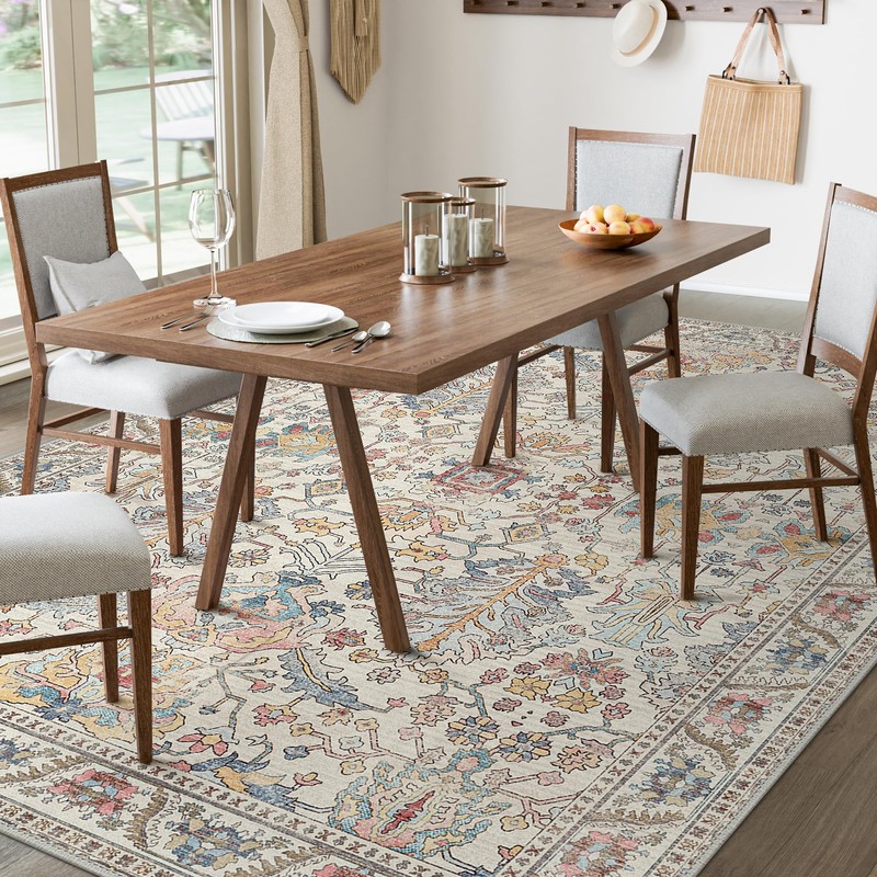 - 【Safety Non-Slip Rug】:The ultra-thin vintage rug can be easily placed under dining tables and furniture without becoming a snag or trip hazard.The back features a non-slip rubberized backing that provides excellent friction and helps keep the area rugs in place,so it won't move or slide away,even with heavy foot traffic.