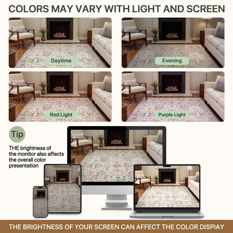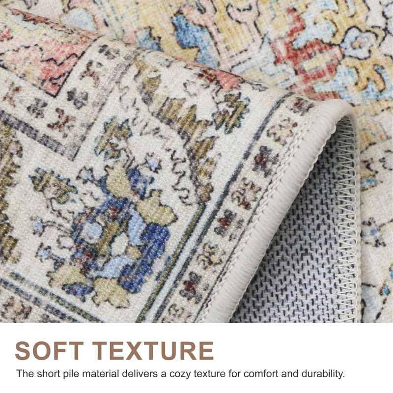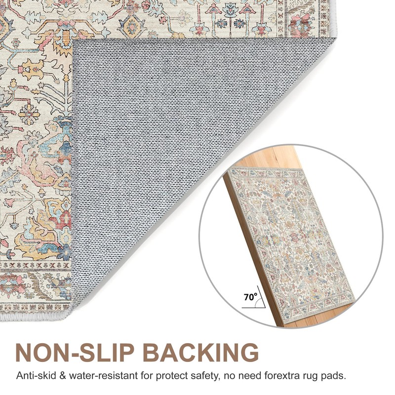 - 【Safety Non-Slip Rug】The ultra-thin vintage rug can be easily placed under dining tables and furniture without becoming a snag or trip hazard. The back features a non-slip rubberized backing that provides excellent friction and helps keep the area rugs in place, so it won't move or slide away, even with heavy foot traffic.