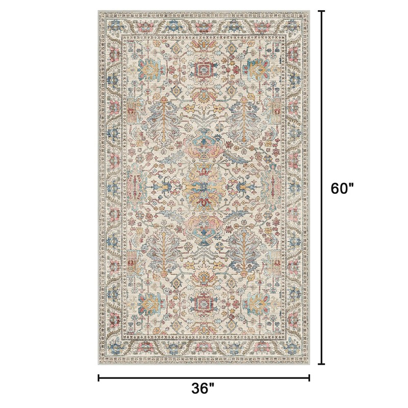Bavni Area Rug 3x5, Non-Slip Washable Rugs for Living Room Office, Boho Distressed Printed Rug, Low Pile Foldable Decorative Carpet for Bedroom Kitchen Office, Retro Multi