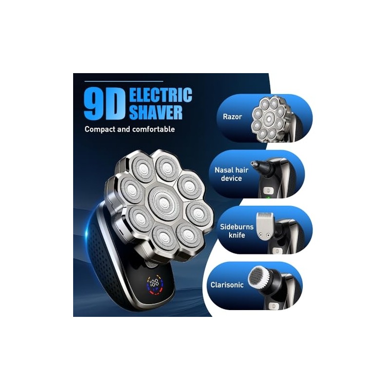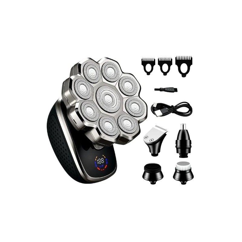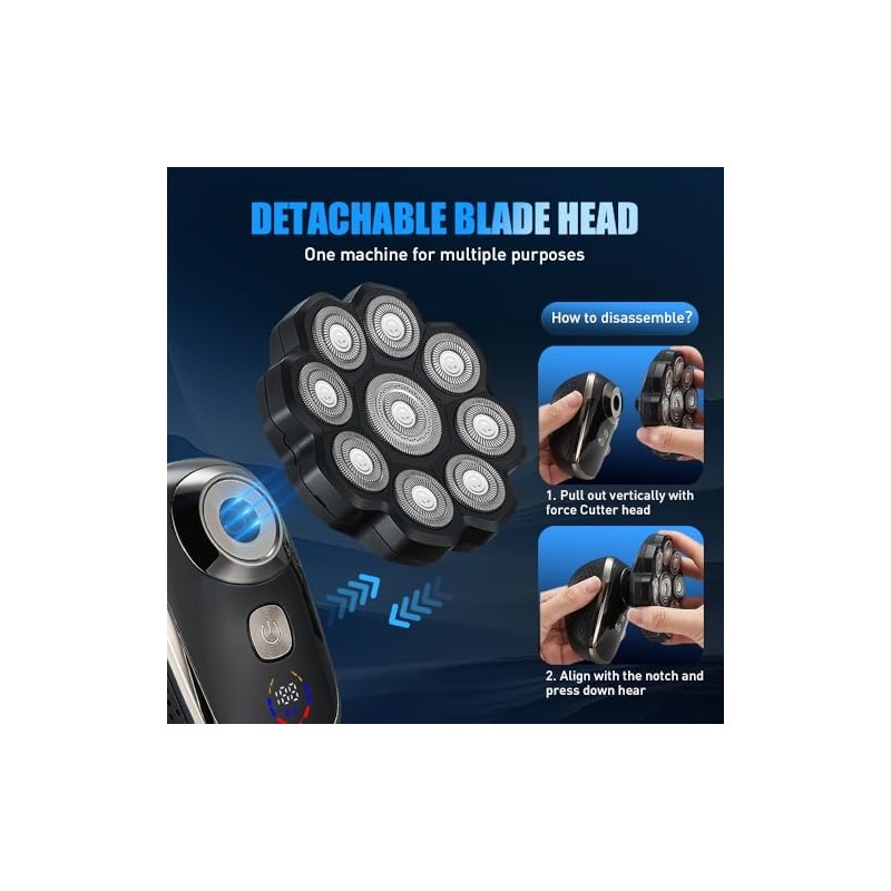 Bawldy 9.0 Shaver, 2025 Detachable Head Shaver, 9D Floating Blade Heads, Intelligent LED Display IPX7 Waterproof Wet Dry Shaving, Rechargeable Cordless Bawldy Pro Razor (9-Blade Head Set)