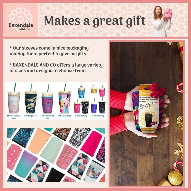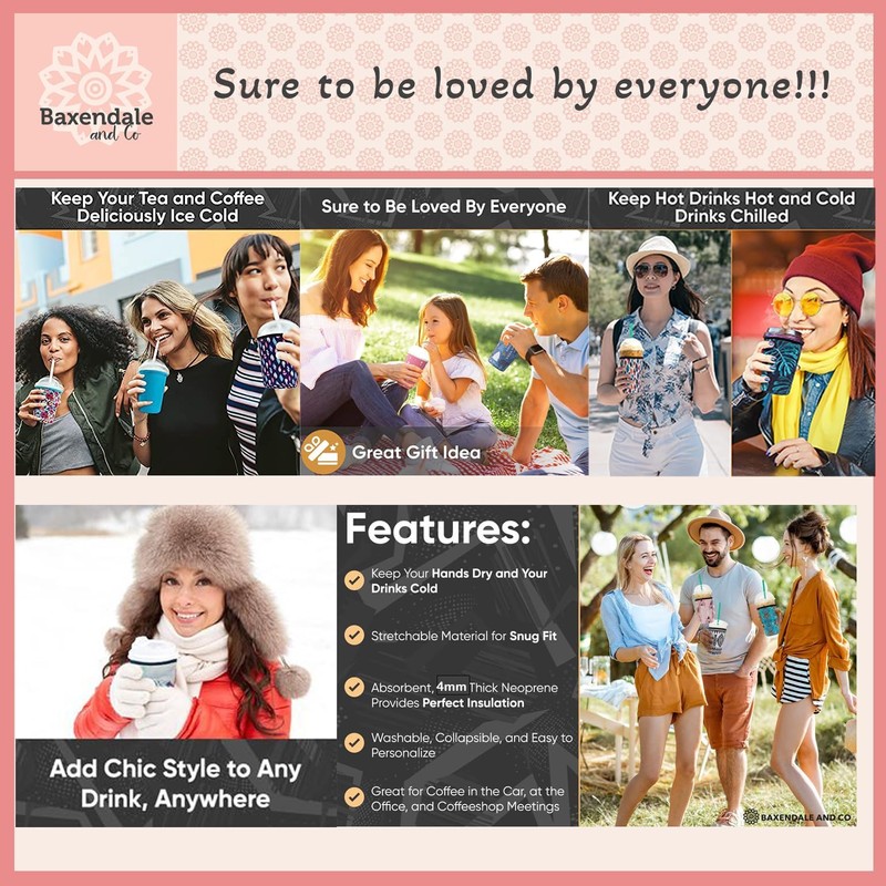 - Prevent Spills, Condensation, and Mess - The Baxendale and Co cup sleeve is a neoprene cup sleeve for cold drinks which reduces condensation; keeping your hands dry but your drink cold. Premium iced coffee socks with a non-slip grip and comfortable feel - the must have ice coffee accessories for any coffee lover.