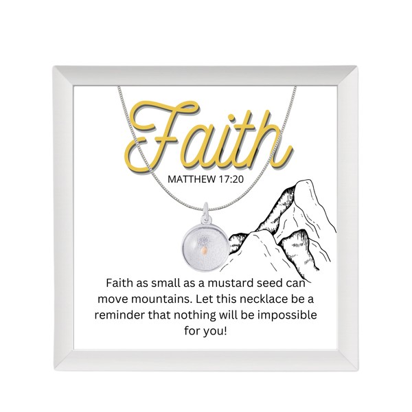 • ❤️ The mustard seed charm hangs gracefully from a sturdy 18 inch or 20 inch sterling silver chain, making it the perfect length for wearing alone or layering with other necklaces.