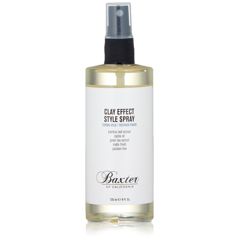 BENEFITS:The Clay Effect Style Spray is the newest, volumizing hair product innovation from Baxter of California. This "clay in a spray" contains the effects of the best-selling Clay Pomade in a convenient spray bottle. It leaves any hair type with a natural shine finish, and can used before blow drying, on its own, as a finishing product, or for on the go style fixes. Total game changer.INGREDIENTS: AQUA / WATER GLYCERIN ALCOHOL DENAT. PVP PEG-8 PHENOXYETHANOL PEG-40 HYDROGENATED CASTOR OIL CAPRYLYL GLYCOL GLYCERYL POLYACRYLATE PEG/PPG-17/18 DIMETHICONE ETHYLHEXYL METHOXYCINNAMATE CAPRYLIC/CAPRIC TRIGLYCERIDE PROPYLENE GLYCOL BENZOPHENONE-4 PARFUM / FRAGRANCE SIMMONDSIA CHINENSIS SEED OIL / JOJOBA SEED OIL LINALOOL SORBITOL CAMELLIA SINENSIS LEAF EXTRACT LIMONENE BAMBUSA VULGARIS EXTRACT CITRIC ACID SODIUM HYDROXIDE ASCORBIC ACID BHT TRIETHANOLAMINE