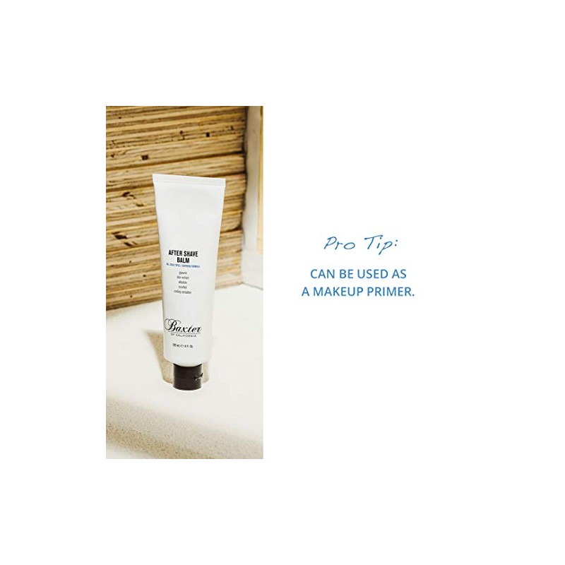 Product Description"Benefits: Baxter of California After Shave Balm is a nourishing post-shave moisturizer for men with aloe and tea tree oil. A therapeutic, moisturizing treatment with natural healing ingredients specially formulated to soothe and protect skin from shaving irritation, dryness and razor burn. Glycerin and organic silicones combine with soothing aloe and allantoin to renew, calm and condition skin. Ingredients: Aqua/ Water, Cyclopentasiloxane, Cyclopentasiloxane, Clycerin, Butylene Glycol, Phenoxyethanol, Polysorbate 80, Acrylates/C10-30 Alkyl Acrylate Crosspolymer, Triethanolamine, Methyl Gluceth-20, Parfum/ Fragrance, Menthol, Allantoin, Ethylhexylglycerin, Linalool, Tetrasodium EDTA, Citral, Benzophenone-4, Aloe Barbadensis Leaf Jiuce, Limonene, PEG-30 Dipolyhydroxy Stearate, Trideceth-6, Geraniol, Citronellol, Citronellol, Coumarin, CI 42053/ Green 3, Potassium Sorbate, Sodium Benzoate, Citric Acid".Brand StoryThoughtfully curated collection of superior hair, skin, and shave essentials is designed to unleash what makes you, you.