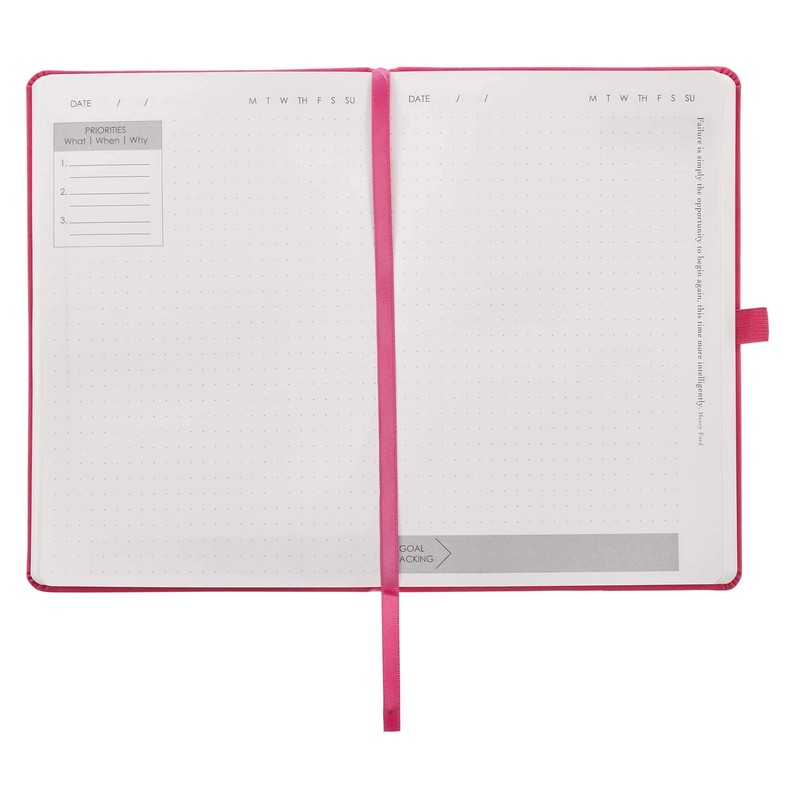 Baxter Undated Daily Planner Daily, Weekly, Monthly, Academic Organizer, Dot Grid Notebook for Time Management, Productivity, Priorities, Goals, Gratitude Journal, Watermelon Pink Faux Leather
