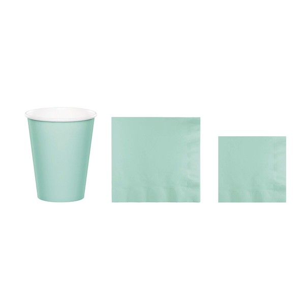 Baxters Party Bundles Bulk, Mint Green, 96 Count 9 Ounce Hot/Cold Paper Cups, 100 Count Beverage Cocktail Paper Napkins, 100 Count Luncheon Paper Napkins, Pack Contains 296 Pieces
