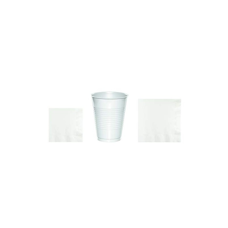 Baxters Party Bundles Bulk, White, 100 Count 16 Ounce Plastic Cups, 100 Count Beverage Cocktail Paper Napkins, 100 Count Luncheon Paper Napkins, Pack Contains 300 Pieces Made in the USA
