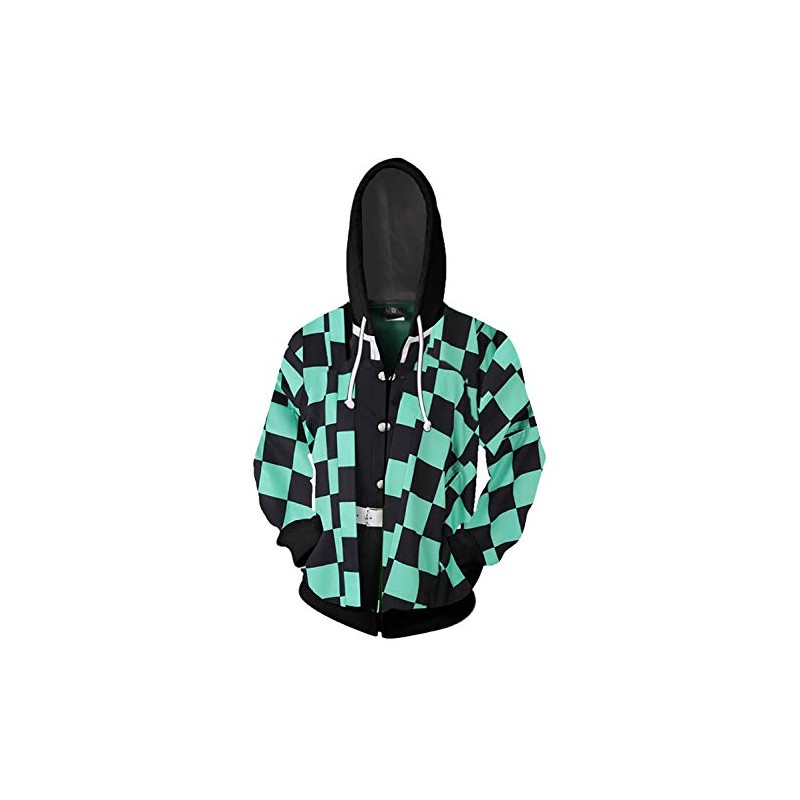 Baycon Anime Hoodies Cosplay Costume Zip up Jacket Sweatshirt Top (L, Kamado Tanjirou)