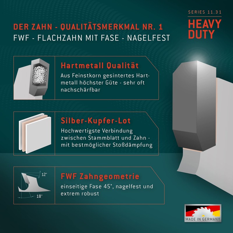 A nail that is cut free is able to be pulled loosely into the teeth and splinters the HM assembly. The same applies to old beams where forged nails are located. These also destroy the HM tipped saw blades. We cannot guarantee for incorrect application.