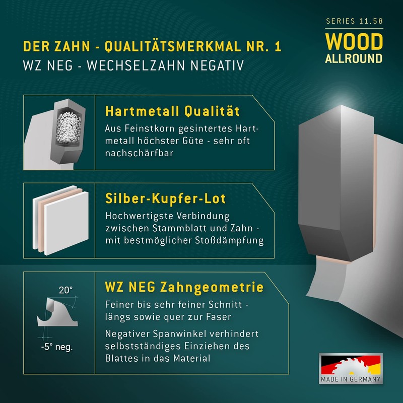Advantages of the HM circular saw blades with alternating teeth negative.