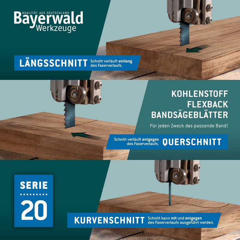 • Saw blades made of tool steel - high-quality steel welded in Germany. All-rounder for a wide range of applications with flexible tape back.