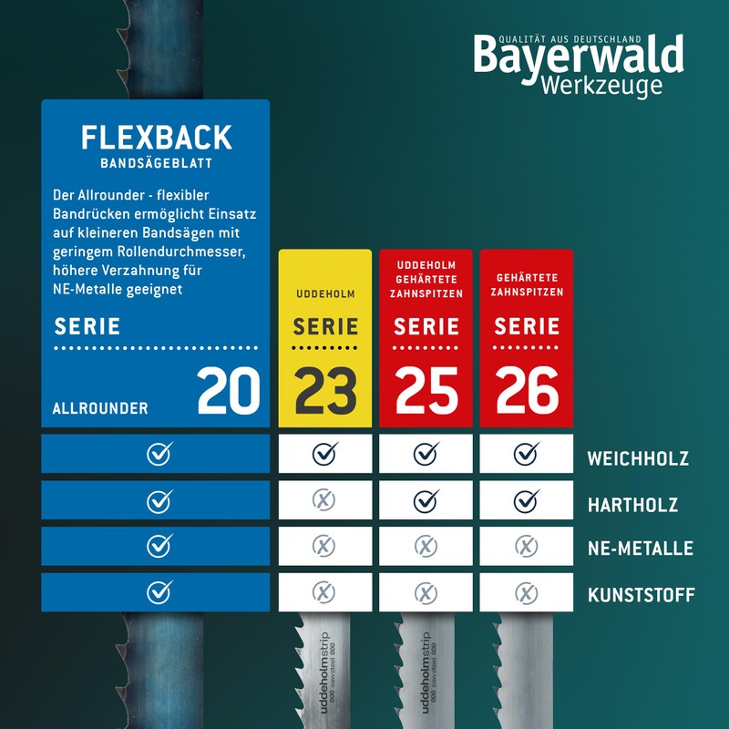- Saw blades made of tool steel - high-quality steel welded in Germany. All-rounder for a wide range of applications with flexible tape back.