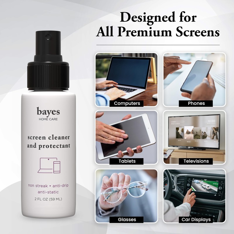 Bayes Electronic Screen Cleaner Spray Kit with Premium Microfiber Cloth - TV Screen Cleaner for Smart TV, LCD, LED, OLED - Tablet, Phone and Computer Screen Cleaner for Car Display - 2 oz