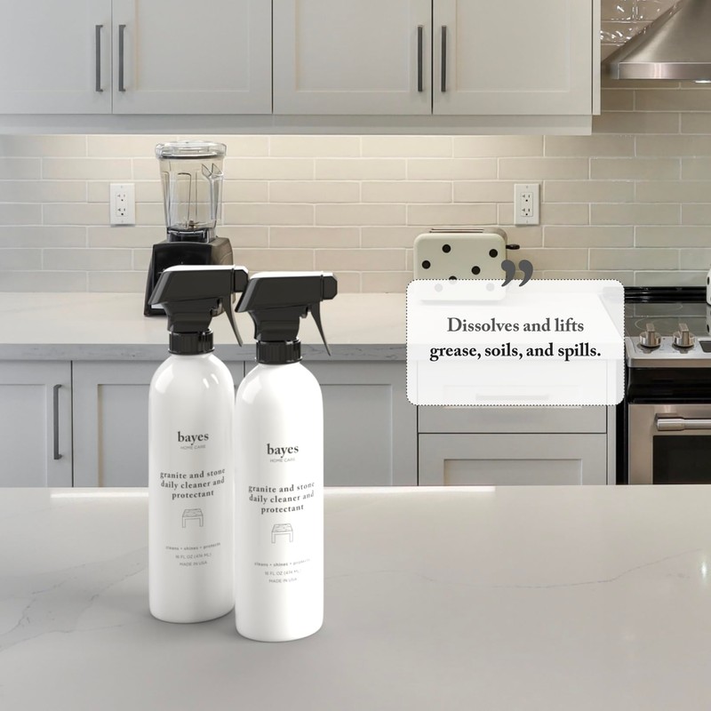 - Bayes granite and stone daily cleaner and protectant is designed to gently clean the surface of your countertops and restore their original seal, leaving them clean, shiny, and protected, streak-free without any residue or haze. Infused with an aromatic citrus scent. Ideal for daily use and helping to protect the original seal