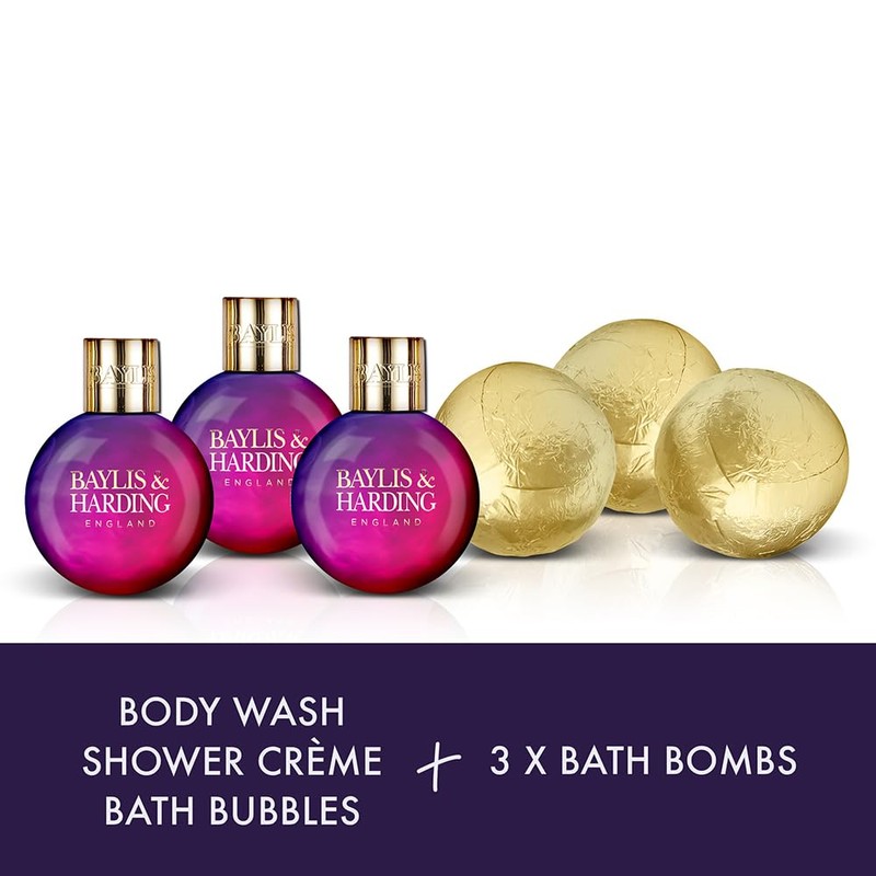 Baylis & Harding Midnight Fig & Pomegranate Festive Bauble Bath & Shower Gift Set (Pack of 1) - Vegan Friendly