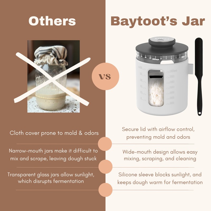 - Air Control Lid for Optimal Fermentation: Unlike traditional jars with cloth covers, our lid allows you to control airflow—open for fresh air and closed for storage, keeping dust and pathogens out while preventing starter from drying.