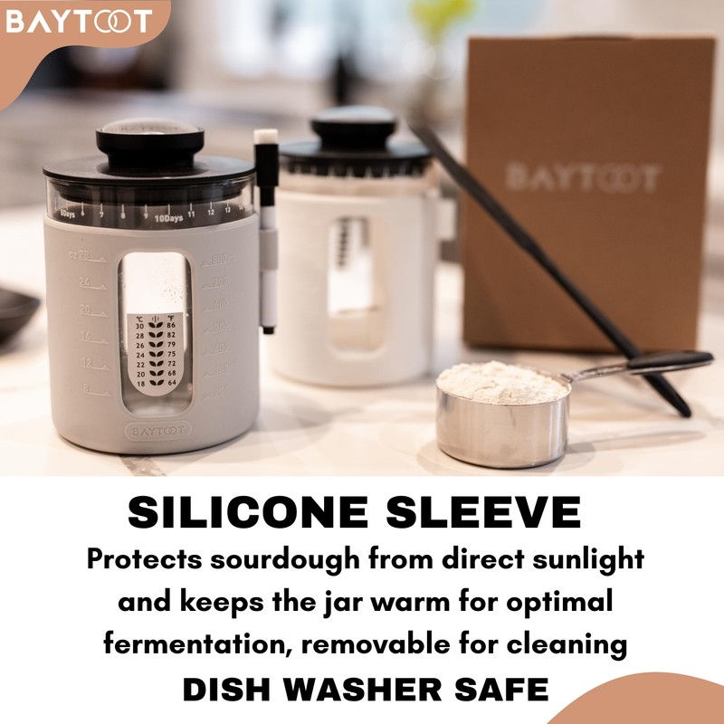 Baytoot Wide Mouth Sourdough Jar Starter Kit 33 oz - Ideal Sourdough Jar for Easy Fermentation, Airflow Lid, Feeding Marker & Spatula Included (white)