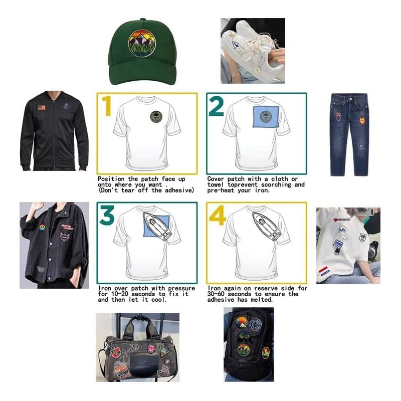 Garment should be clean & freshly laundered for attaching patch. Here are the basic instructions for setting our iron on patches.