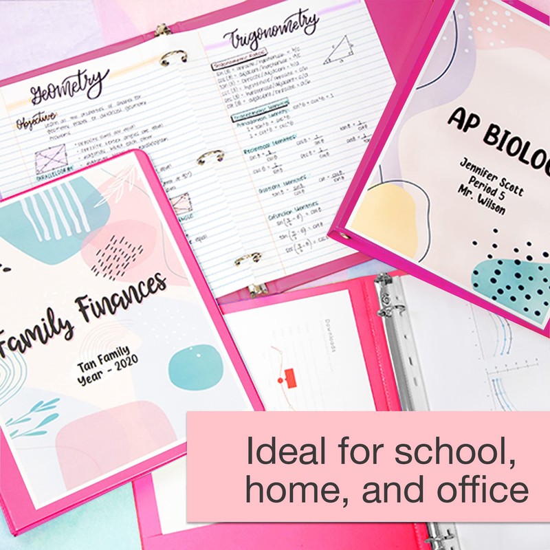Discover our extensive range of 3 ring binders designed to streamline your life with style and functionality. Whether you're a student, professional, or organization enthusiast, we have the perfect binder for you. Choose from a variety of sizes, ranging from 1/2 inch to 3 inches, including round-ring and d-ring options, to suit your needs. Our collection includes vibrant colors like pink, blue, black, white, and more, ensuring you find the perfect match for your personality and style. Each binder comes with Two interior pockets for extra storage. Feature clear transparent view covers to insert or customize your binder on the front, back and spine.