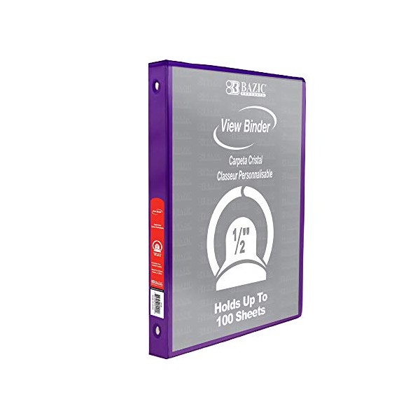 BAZIC 3 Ring Binder 1/2" Economy View Binders Organizer - Purple, Round Ring, Hold 100 Sheets Paper, for School Office Home, 12-Count