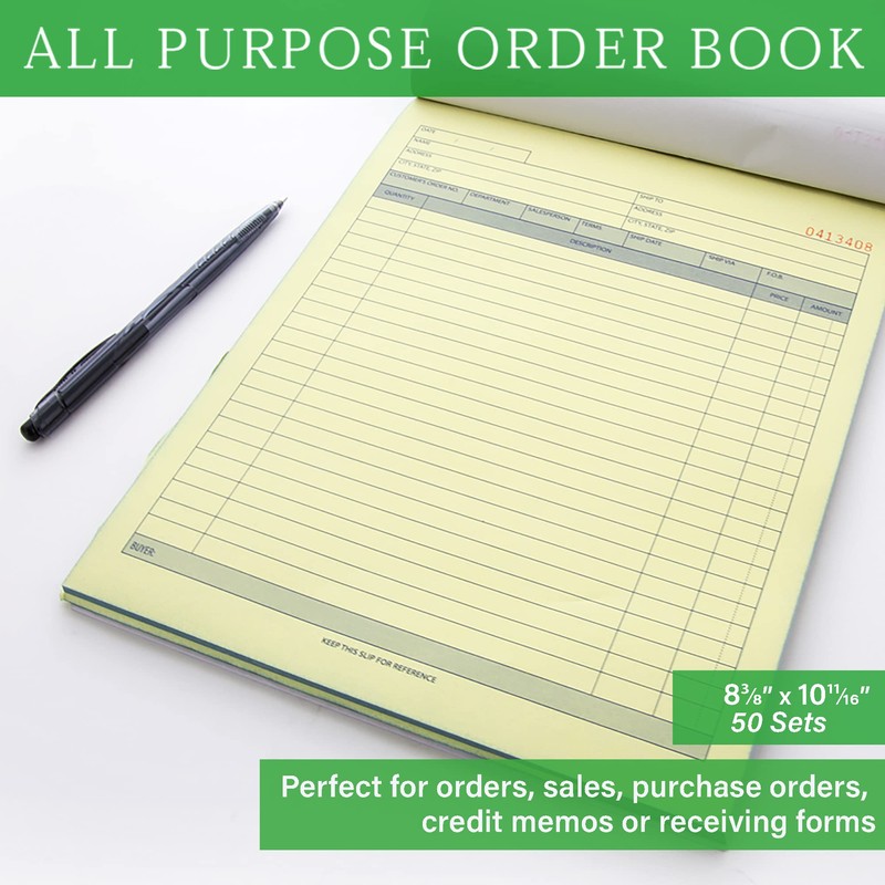 BAZIC All Purpose Order Book, 50 Sets 8 3/8" x 10 11/16" 2-Part Carbonless, White & Bound Wraparound Cover (50 Sets/Pk), 1-Pack