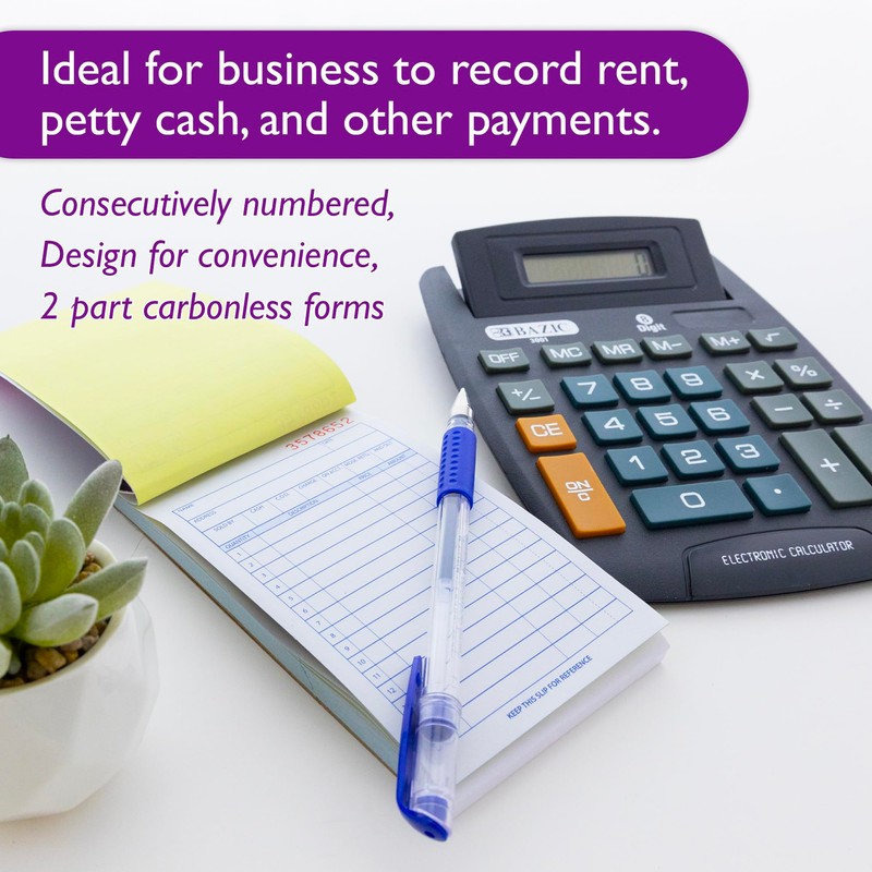 - CONSECUTIVELY NUMBERED. The unique large 7-digit receipt numbers printed in red helps you easily locate orders. Easily customize by using the extra space for your company stamp.