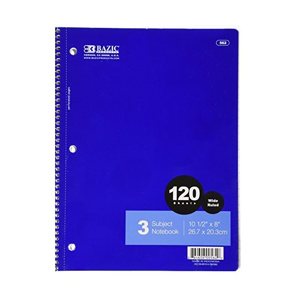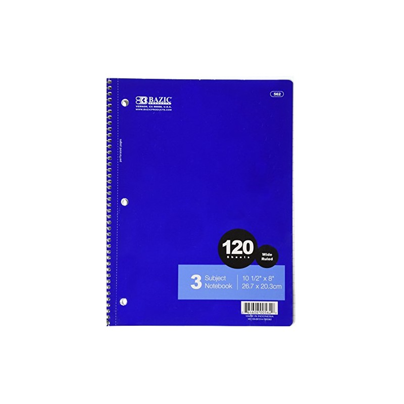 BAZIC W/R 120 Ct 3-Subject Spiral Notebook