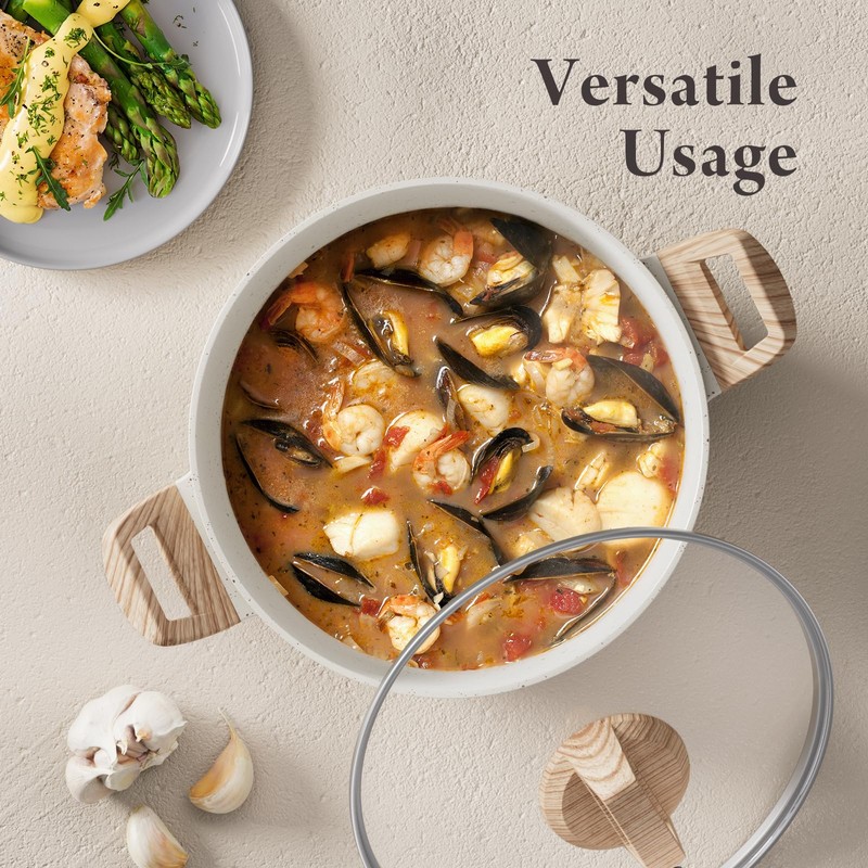 • Even Heat Distribution: The ceramic cookware set ensures rapid, even heating without hot spots, allowing your food to cook uniformly whether you're boiling, simmering, or reheating.