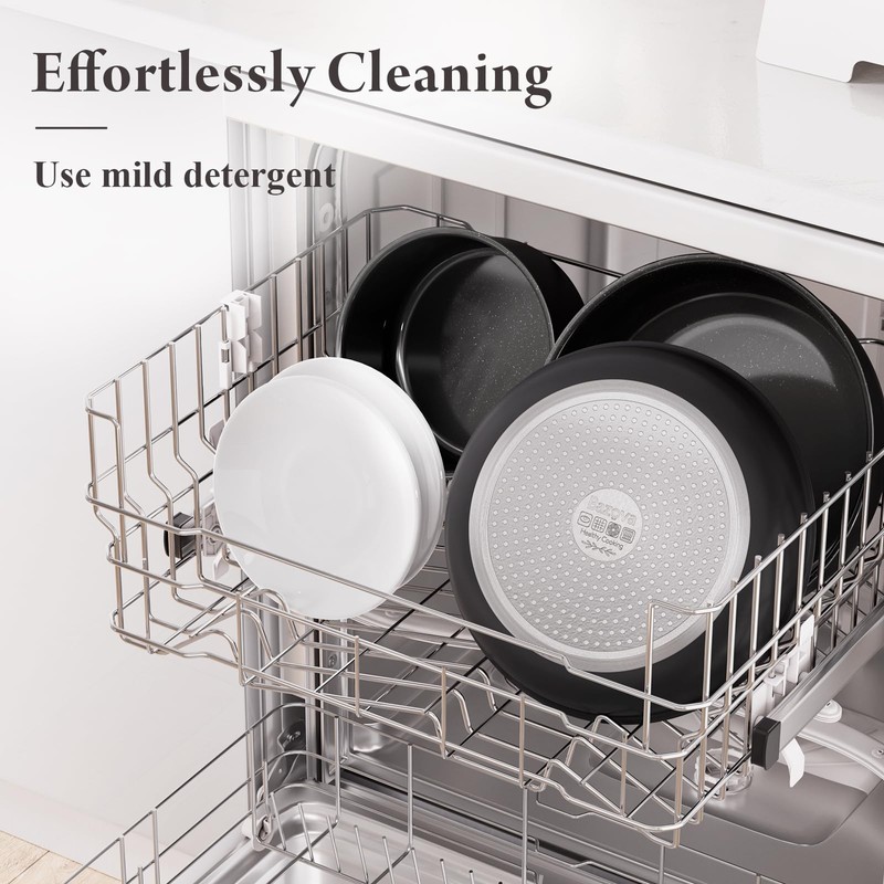 - Easy Cleaning: While our cookware is dishwasher-safe for your convenience, we highly recommend handwashing. A simple rinse or quick wipe effortlessly removes any residue, ensuring your cookware remains spotless and maintains its pristine condition with ease